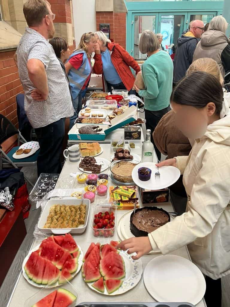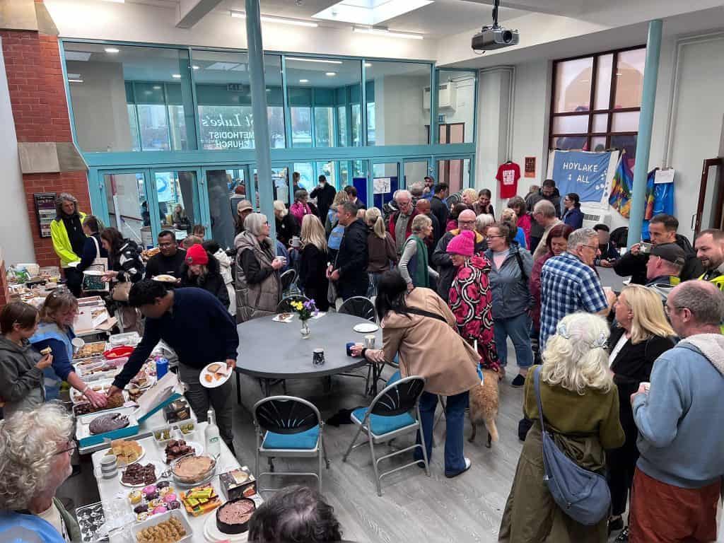 Hoylake4All’s Big lunch Posted on 26/09/202505/10/2025 by hoylake4all On Sunday 14th September, around 200 people, including 40 or so asylum seekers, joined together in St Luke’s for friendship, support and cake, lots of cake. The weather was wet and cold, but the atmosphere was warm and welcoming